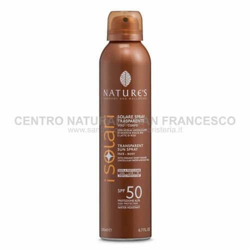 Solare spray trasparente viso-corpo a protezione alta, arricchito con acqua unicellulare di arancia dolce e latte di riso