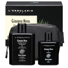 Una confezione speciale, un’eccellente idea regalo contenente lo shampoo doccia e il profumo da 50 ml della linea Ginepro Nero, accompagnati da un’elegante beauty set per portare sempre con sé la qualità Erbolario. Lo shampoo doccia è un prodotto delicato ed energizzante, adatto anche alle pelli più sensibili grazie all’azione emolliente dell'idrolizzato di sesamo nero. L'azione detergente delicata sull'epidermide si unisce all'azione igienizzate sui capelli, grazie alla presenza nella formulazione del carbone vegetale, del cumino nero e del ginepro nero, ad azione purificante e tonificante. Il profumo per il corpo ha una fragranza maschile decisa, che racconta l'emozione di una corsa nella macchia mediterranea, dalla nota di testa di arancio amaro, elemì, bergamotto, pompelmo scorza; nota di cuore di bacche di ginepro, pepe rosa, legno di cedro; nota di fondo di patchouly, vetiver, benzoino di Sumatra, muschio di quercia.