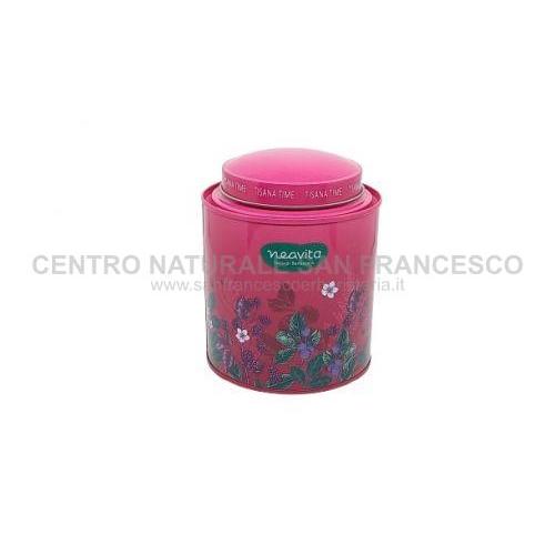 Latta di colore rosso rosato, ideale per contenere le tisane sfuse